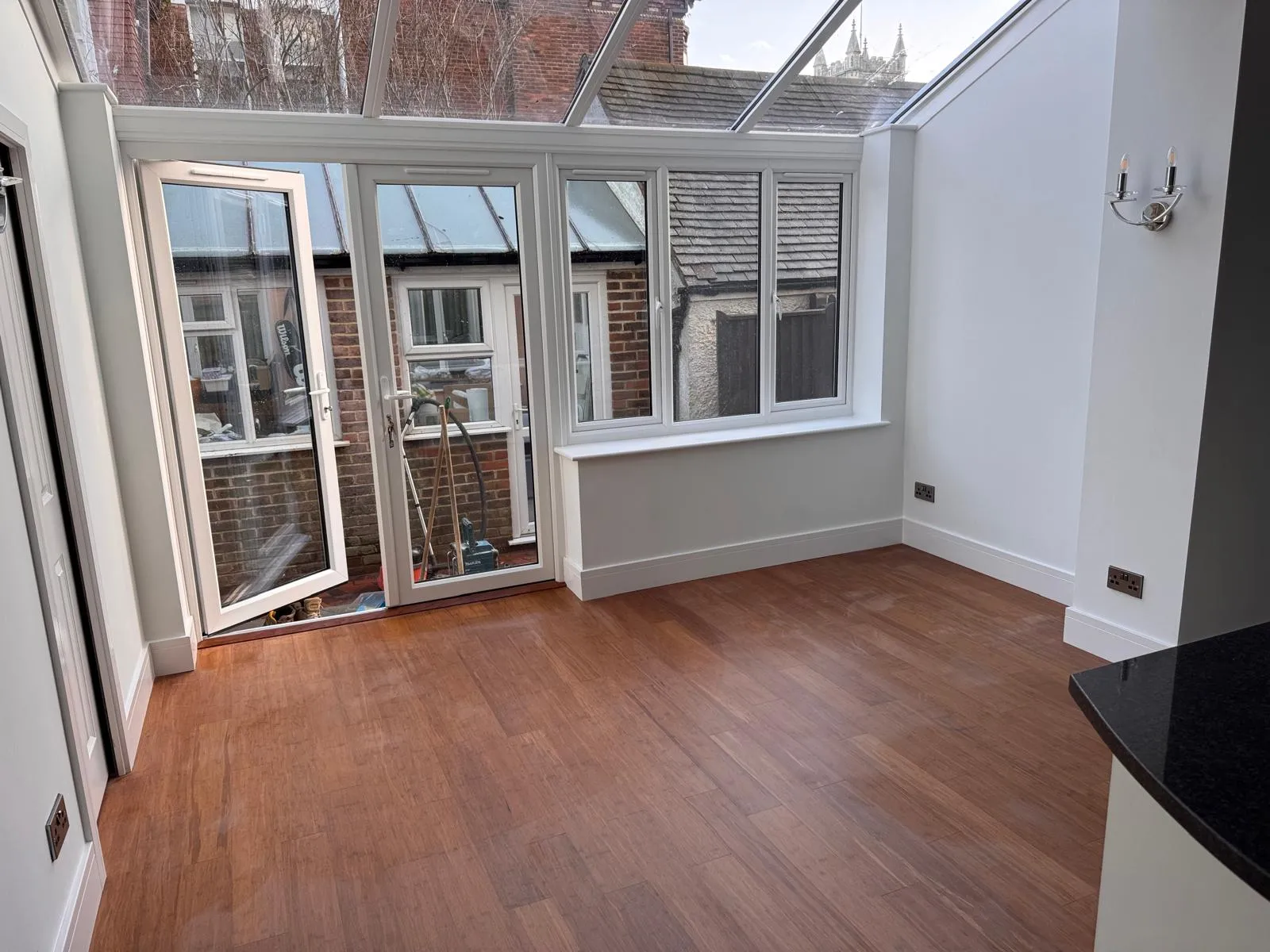 Externally, we completed roof repairs, guttering works, and installed some new replacement windows. The property was extended and enhanced with a modern glass extension. Internally, the refurbishment was completed with a new kitchen and new bathrooms, bringing contemporary comfort while respecting the building’s period character.